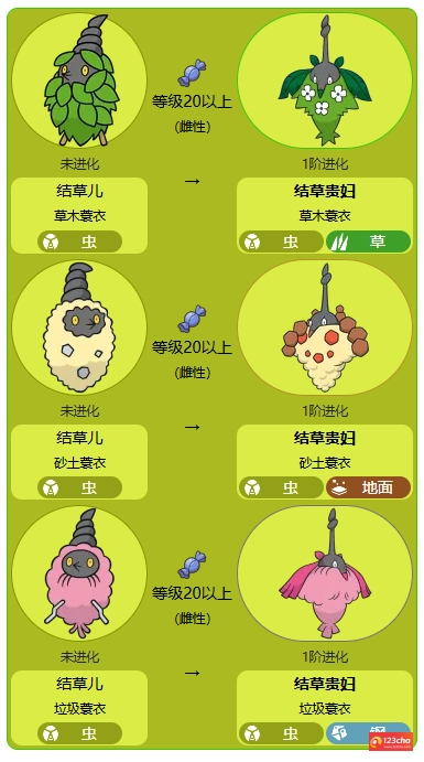 1、结草儿是一只拥有特殊的进化方式的宝可梦。