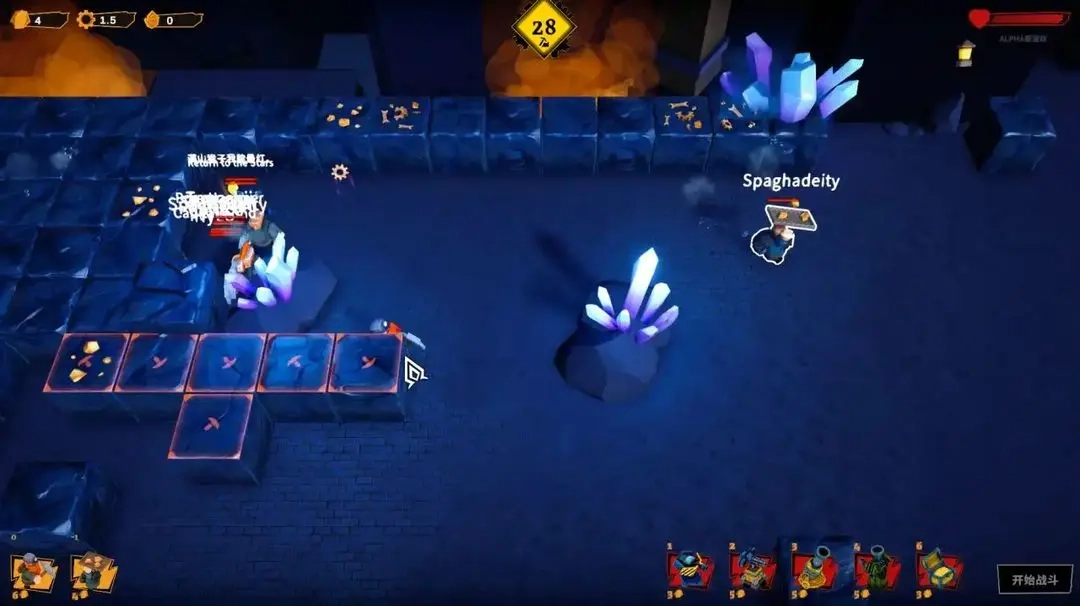 在第三阶段,除了炮塔可以进行攻击之外,玩家们也可以凭借手中的武器进行攻击,初始武器为一把手枪,玩家们可以通过挖矿来获取子弹量有限的强力武器,比如ak47和RGB火箭炮。当你感到局势不对时,还可以发动“小钻车”神力,你可以理解成小推车 并且场上的小钻车会随时间自动恢复,因此无需吝啬。