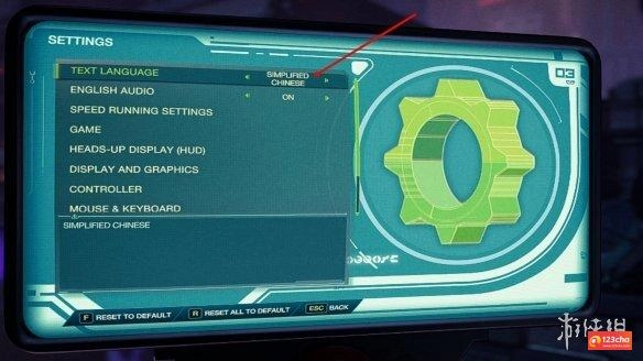 3、调整第一行TEXT LANGUAGE的文本设置至SIMPLIFED CHINESE。